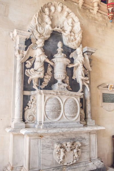 Against the south wall of the south aisle is a memorial to Sir William Coventry (1628-1686), who served as Secretary to The Admiralty. The memorial is to a design by William Kidwell, but the carving under the memorial is by Grinling Gibbons.