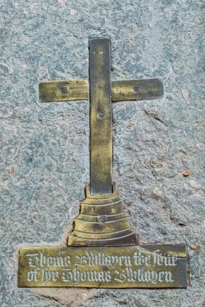 Against the south wall of the Sidney Chapel is the effigy of Sir Stephen de Penchester (d. 1299), the first owner of Penshurst Place. This Purbeck marble effigy probably topped a tomb chest, now lost. Next to this effigy is a brass commemorating Margaret Sidney (d. 1558). Another brass is that of Thomas Bullayen (Boleyn), brother of Anne Boleyn, King Henry VIII's second wife.