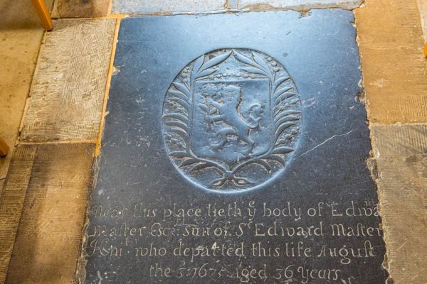 One of the oldest grave slabs in the church is in memory of Edward Masters (d. 1690). In an interesting bit of phrasing, the epitaph records, 'Also under this stone his lady lyes interred.'