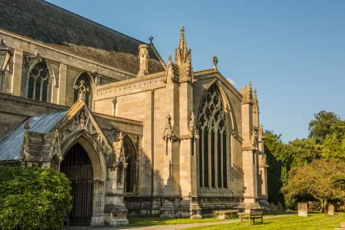The tower is topped by an octagon, itself surmounted by a slender spire. The tower boasts over 35 beautifully carved statues. More fancifully carved figures peer from the south front and the interior and exterior of the south porch. Each grotesque carving is unique and together they make up one of the finest collection of medieval carvings on any English church.