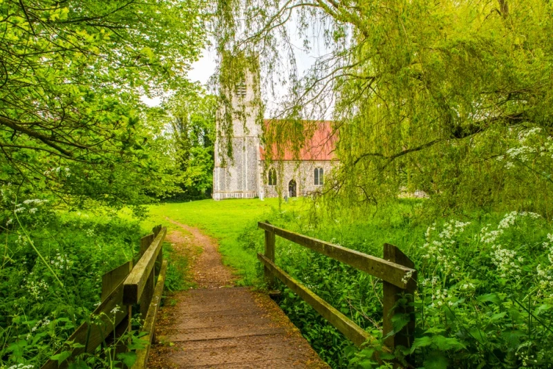 A path leads from the churchyard to the water's edge, where a footbridge across the river takes you to a trail that runs along the riverbank, allowing wonderful views of the church glimpsed through overhanging branches. The quiet beauty of the riverside location evokes poet John Betjeman's description, 'The lap lap lapping of the weedy Bure'. Betjeman loved historic churches, and he would have loved St Mary's and its picturesque location.