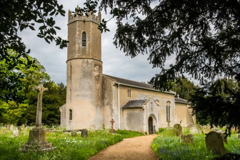St Andrew's church stands within the grounds of Raveningham Hall, the ancestral home of the Bacon family. The church is shielded from view by a copse of tall trees, so that it isn't immediately visible to visitors exploring the Hall's popular historic gardens.
