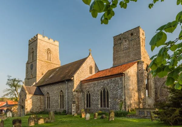 The impressive west tower of the parish church was added in the 15th century and featured traditional East Anglian brick and flint chequerwork. The upper chamber of the tower was sometimes used as a chapel. Near the tower is the stump of a medieval churchyard cross.