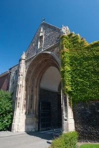 Location: At the northern end of Tombland, giving access to the cathedral's west end. Exterior only, easily viewed from Tombland at any time.