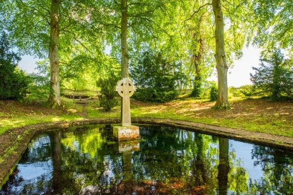 In 1780 a 15th-century statue of St Paulinus was brought to Holystone from Alnwick Castle and erected in the centre of the pool. Then in the Victorian period, the statue was moved to dry ground at the west end of the pool and a stone cross in Celtic style was raised in the pool to replace it. The cross is inscribed with the words 'IN THIS PLACE PAVLINUS THE BISHOP BAPTIZED THREE THOUSAND NORTHVMBRIANS – EASTER DCXXVII'.