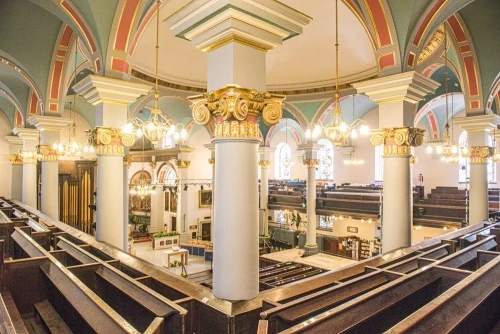 So large was the building that the portico and the striking tower were not finished until 1821, though the building was consecrated in 1797. The church originally had galleries on all four sides of a square nave, in keeping with Georgian style.