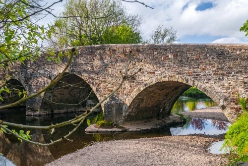 This Grade-II listed bridge spans the River Exe, which here acts as the county boundary. There was a medieval bridge on the site, but the present bridge dates to the early Georgian period. When the medieval bridge fell into decay in 1694 it was the responsibility of the residents on the Somerset bank to repair it.