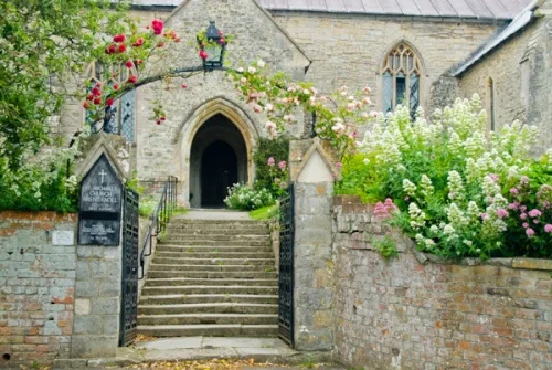 The church of St Michael at Brent Knoll stands on a rise above the village. It is a small building, with a Norman doorway. The bulk of the church is much later, however, with a tall Perpendicular tower, and early 14th-century south porch and south transept.