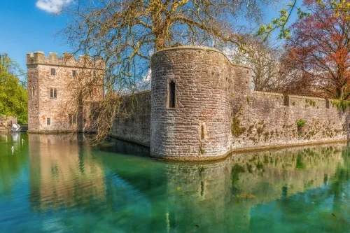 The palace was begun around 1206 when Bishop Jocelin Trotman was granted a royal license to build a palatial residence and deer park on watery ground near the cathedral. Some of that water comes from the underground wells which give the city its name. The water bubbles up from beneath the ground at a rate of 100 litres per second and fills the beautiful well pool before running into the broad moat.