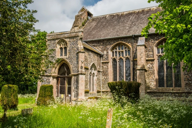 Mellis church stands in an idyllic rural location well outside the village centre, on the large common traditionally used for communal grazing purposes. The church dates to the 13th century but stands on the site of a much earlier building, probably the one mentioned in the Domesday Book of 1086.