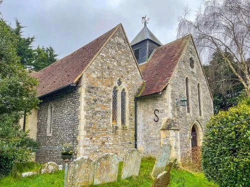Standing apart from the village centre and just off the A259 is the parish church of St Peter and St Mary. The church dates to the 13th century, though only the chancel remains of that medieval building. Look for medieval graffiti on the north-eastern corner of the church. The interior, including the richly-decorated stained-glass windows, is largely Victorian.
