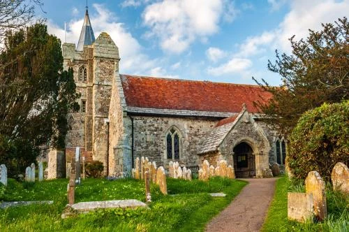St Mary's church stands in the pretty village of Brighstone, a mile or so from the south coast of the Isle of Wight. The church is surrounded by thatched cottages and presents a timeless picture of village life. St Mary's dates to 1190, and is perhaps best known for the fact that three formers rectors have gone on to become Bishops.