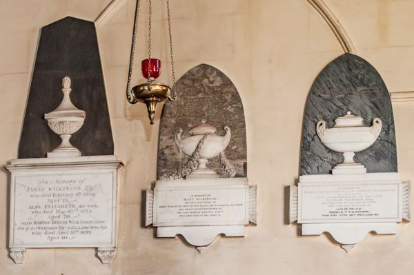 On the east wall is a tablet to an unknown person, possibly a member of the Worsley family, dated to 1630. More mural tablets to members of the Wilkinson family of Parsonage Farm decorate the chancel.
