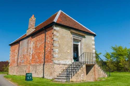 A 17th-century town hall with no town! Newtown was once the capital of the Isle of Wight, and the hall was built to reflect the town's status. Newtown lost its importance, and the town dwindled to a peaceful village, but the brick hall survives as a reminder of Newtown's past.