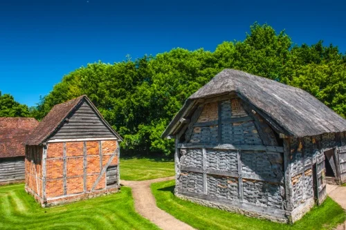 Perhaps the 'signature building' at Avoncroft, this lovely 15th-century timber-framed stood at the corner of Worcester Street and Station Street in Bromsgrove. It is typical of townhouses in the late medieval period, with a central hall and several smaller family rooms. It originally had another block with a pantry and buttery.