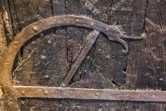 In the upper half of the door is the Viking longship, with a magnificent dragon's head prow and a large steer oar at one end. The ironwork is Scandinavian in style, another point in favour of the door dating to the 10th century.