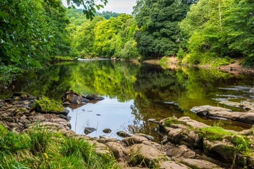 The National Trust preserves beautiful ancient woodland along the south bank of the River Swale at Hudswell Woods, just west of historic Richmond, Yorkshire. The area may have originally formed part of a purpose-built picturesque woodland and includes the remains of disused quarries. It is bounded by fields and meadows showing evidence of ancient field boundaries.