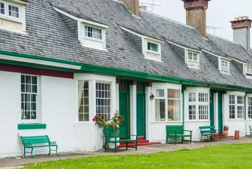 On the seafront is Hamilton Terrace; two terraces of identical cottages, built in 1895 to house workers on the 10th Duke of Hamilton's estate. Most of the cottages are now holiday cottages.