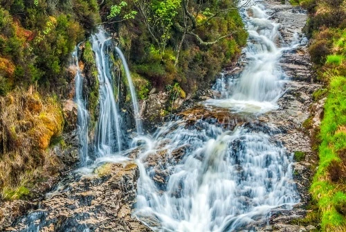You can stop here, or carry on beyond the fence on a much rougher path that leads directly towards Coire nan Ceum. On the way, this rough trail passes several more dramatic waterfalls. This trail ends about 700m south of the forest, at which point you simply turn around and head back the way you came -- unless you fancy tackling Caisteal Abhail without a trail!