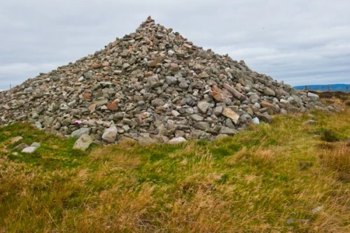 The cairn has been quite obviously altered over time, and now sports a pointed pile of stone on top that makes it resemble a wizard's hat.