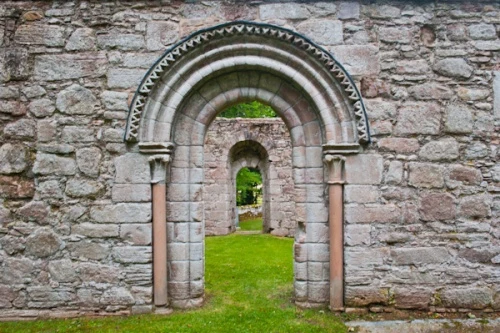 Scotland is not blessed with many surviving medieval parish churches, but the old kirk at Auchindoir is one of the best. St Mary's dates to the 13th century, and boasts a lovely 14th-century sacrament house, and a wealth of beautiful Romanesque carvings, particularly those on the doorway. The building was remodelled in the 16th and 17th century, but it has stood as a roofless ruin since around 1810.