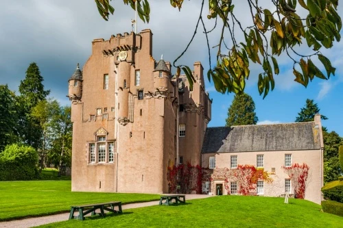 Crathes Castle holds a special place among the 16th-century Scottish castles that seem to dot the lush landscape of Aberdeenshire. It is one of the best-preserved castles in the region and stands in lovely gardens overlooking the River Dee.