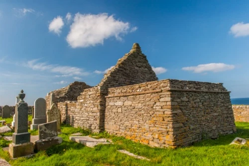 The oldest ecclesiastical ruin in the north of Scotland, St Mary's Chapel is a roofless 12th-century chapel on a headland overlooking the sea. The chapel is surrounded by a graveyard that was in use until sometime after 1872, and a short distance away is a holy well also dedicated to St Mary.