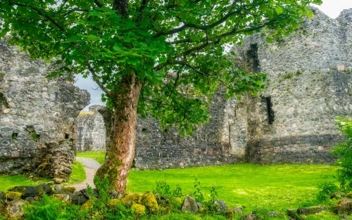 Though empty now, the inner courtyard was originally crowded with timber buildings, providing stables and workshops. Residences were in the corner towers, and the large northwest tower housed the Comyn lords. The Comyn Tower stands three storeys high, with a storage area in the basement and the lord's private quarters above.