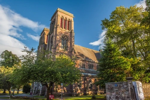 Inverness Cathedral stands on the west bank of the River Ness in the centre of the city, opposite Inverness Castle. It was one of the first cathedrals to be built in Britain after the Reformation.