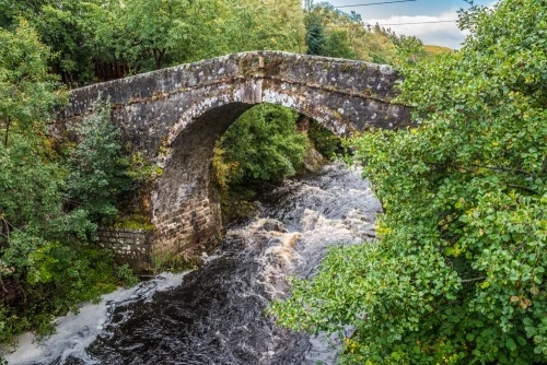 The design is unusual amongst Highland bridges because the arch is built of squared masonry augmented by a decorative keystone bearing the date 1732 and a decorative string course. Unfortunately, the string course was built of soft sandstone which erodes easily.