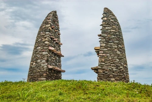At the eastern end of the Braigh isthmus, east of Stornoway on the Isle of Lewis, stands a striking memorial to the Aignish Farm Raiders, the brave men and women of the Point area of Lewis who risked imprisonment in their struggle against an oppressive system of land use and ultimately paved the way for reforms to Scottish law.