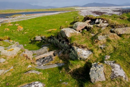 Dun Vulan was abandoned by the time the Vikings arrived, but it was still a prominent feature in the landscape; we know this because the name of the Norse settlement at Bornais is made up of the Norse words 'borg' and 'ness', or 'fort on the promontory'.