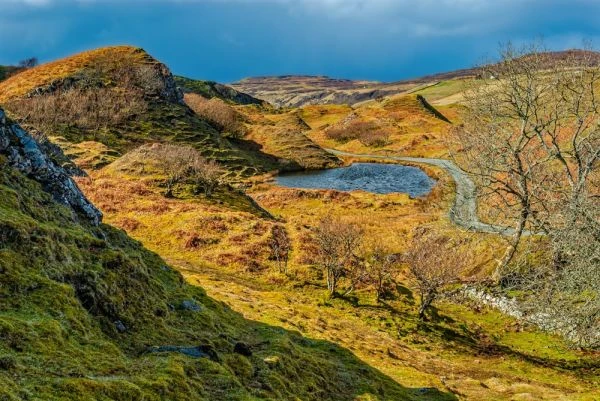 The Fairy Glen forms a small part of Glen Uig, and is easily explored on foot by a reasonably fit person. Within a few hundred metres are lochans, waterfalls, atmospheric copses of trees covered in moss, jagged peaks and steep cliffs.