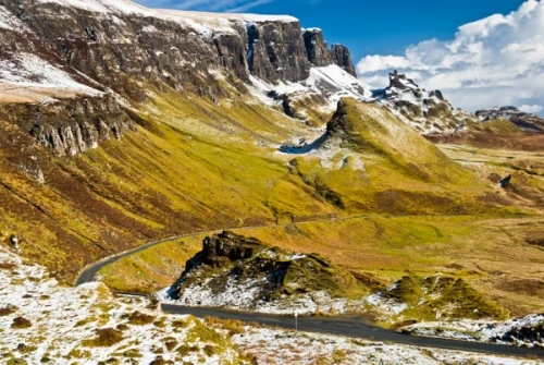 My best photo came on a frosty morning, when a thin sprinkling of snow covered the ground. I wasn't intending to visit The Quiraing at all that morning, but I picked up a couple of Australian hitchhikers on their way to Uig. I thought I'd save them the steep climb up the slope of the Trotternish Ridge, so I drove them to The Quiraing car park to save them the effort. When I saw the view, I couldn't resist taking the main photo that accompanies this article.
