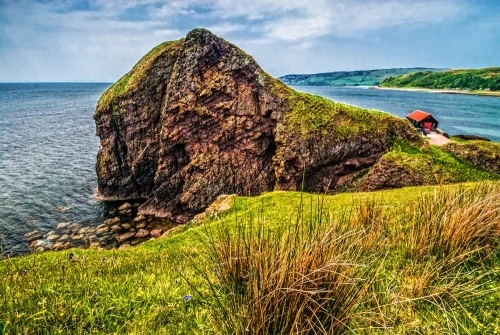 In truth, the remains of Dunaverty Castle are paltry, and would not ordinarily be worth a visit were it not for the history of the site. The massacre on 1647 gives the ruinous site a macabre interest. It is a fabulous location, and it is easy to imagine how dramatic a fortress perched on the rocky headland would have appeared.