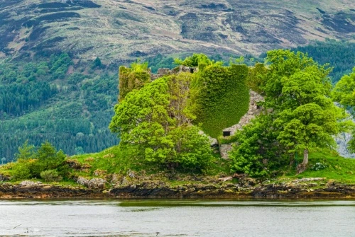 Old Castle Lachlan is on the B8000 about 4.5km from its junction with the A886. There is a parking area a stone's throw south-west of Kilmorie Chapel and a larger car park at the Inver Restaurant, a few hundred metres down the road. A signed footpath leads from both the chapel and the restaurant. These paths link to a path that leads across the river, skirting the edge of Lachlan Bay before joining a paved track to the castle.