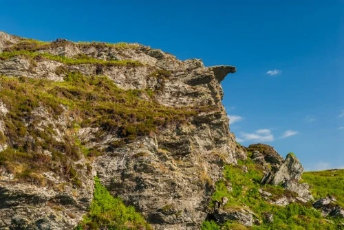 According to legend, Hangman's Rock, on the slopes of Beinn Eibhne, at the southern tip of Colonsay, was used for public hangings, performed by passing a rope through a hole in a natural rock outcrop.