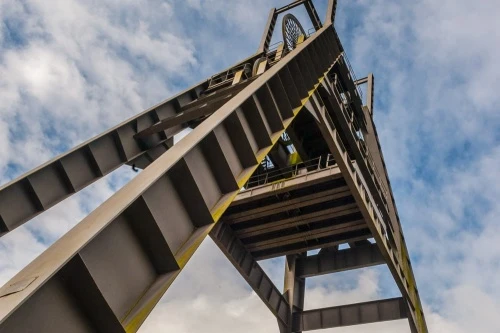 More accurately known as No 3 Headgear, this four-legged welded steel frame supports four pulley wheels used to raise coal from the pit.