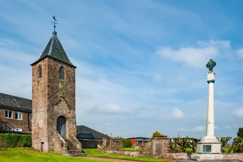 The slender bell tower is all that remains of a 17th-century church standing in a burial ground on Auchterarder's long High Street. The church was built in 1660 and was the third on the same site. It was dedicated to St MacKessog, a 6th-century Irish missionary and son of the King of Cashel, who came to Perthshire around AD 510.