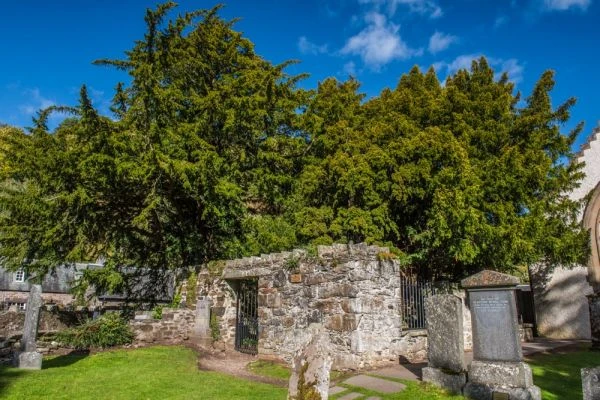 The Fortingall Yew became such a popular visitor attraction in the 18th century that visitors began carving pieces of the tree to take away as souvenirs. Their careless enthusiasm threatened to kill the tree, so a high stone wall was erected around the tree, allowing you to see clearly see the yew from a safe distance without harming it.