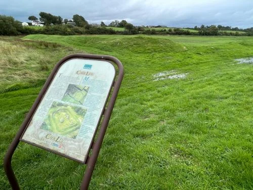 The name Caer Leb translates loosely as Leaven Castle. That might conjure up images of battlements and drawbridges, but nothing could be further from the truth. This 'castle' is a prehistoric enclosure near the River Braint. The site is bounded by an arrangement of double banks and ditches, some sections of which have since been levelled.