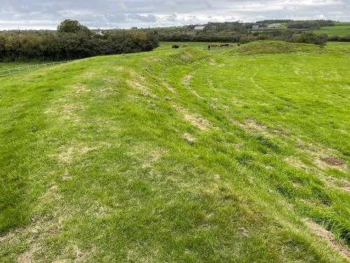 The banks are up to 10m wide and almost 5m high in places. The entire site was originally enclosed in a second, smaller ditch, of which nothing remains.