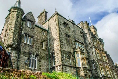 Craig-y-Nos Castle is a Victorian country house on the southern fringe of the Brecon Beacons, built in 1840 by Captain Rice Davies Powell. Captain Powell created a mock Gothic castle of local limestone on a terraced site above the River Tawe. His design called for a grand mansion, but costs outstripped Powell's funds, and the north wing remained unfinished.