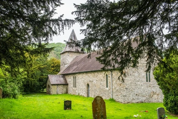 Finding the church is not straightforward. From the centre of Llandrindod Wells take Spa Road East. The road turns into Cefnllys Lane as it leaves Llandrindod. Follow the lane until you reach the picnic area at Shaky Bridge, on the east bank of the River Ithon. There is a free parking area with several picnic tables beside the river. Cross the bridge and bear left along the well-trodden path to St Michael's church.