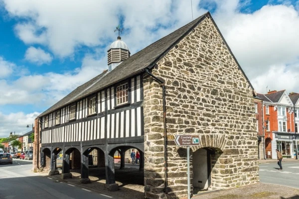 In the centre of Llanidloes stands one of the most remarkable historic buildings in Wales; the Old Market Hall, built between 1612 and 1622 as a combination marketplace and occasional courthouse. The Old Market Hall is the oldest timber-framed market hall in Wales still in its original location.