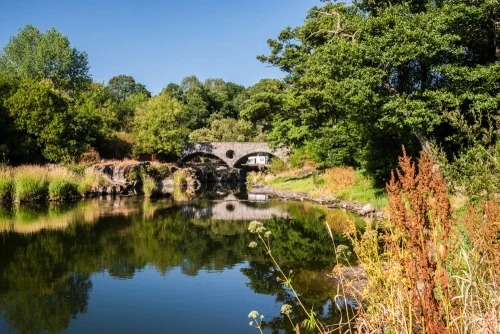 The focal point of Cenarth is its striking 18th-century bridge, built in 1787 by William Edwards. Williams and his son David designed the bridge with a series of peculiar circular holes. The holes are not decorative but were added to reduce the weight of the span while maintaining its strength.