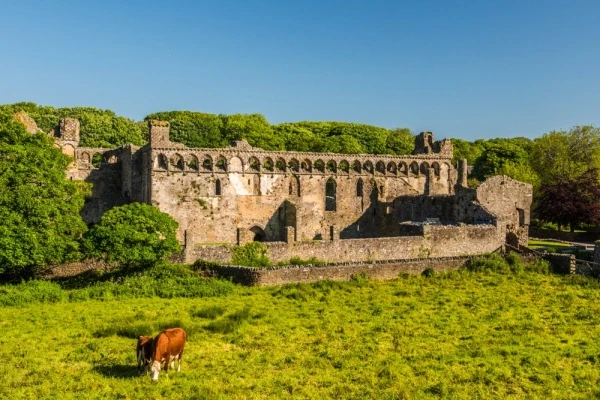 The 14th-century residence of the powerful Bishops of St Davids stands in a meadow setting beside St David's Cathedral. The Palace was built between 1328-47 by Bishop Henry de Gower. The great hall porch is the most highly decorated part of the ruins and an arcaded parapet decorate many of the ruined buildings.